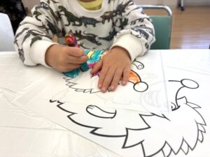 溶かして固めて完成したクレヨンで塗り絵も🧸🍒