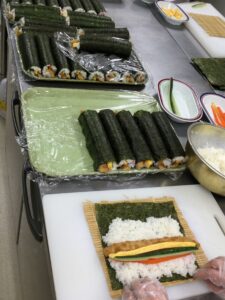 調理室では子ども達のためにせっせと人数分の恵方巻づくり。